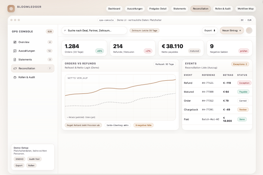 Provisionsregeln, Statements und Abrechnungen nachvollziehbar machen – damit Skalierung nicht an Excel hängt.